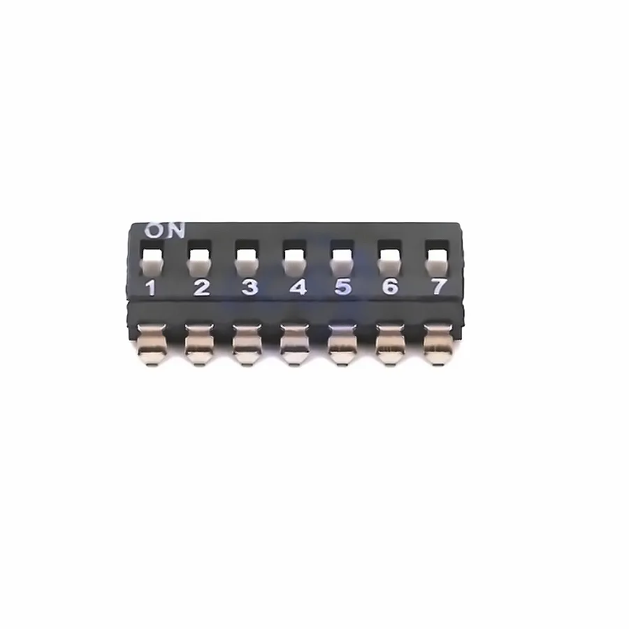 | الوصف | 7Bit SPST 24V 25mA Black 3000 Times Flat Toggle, Raised Style SMD-14P,6x17.8mm DIP Switches ROHS |