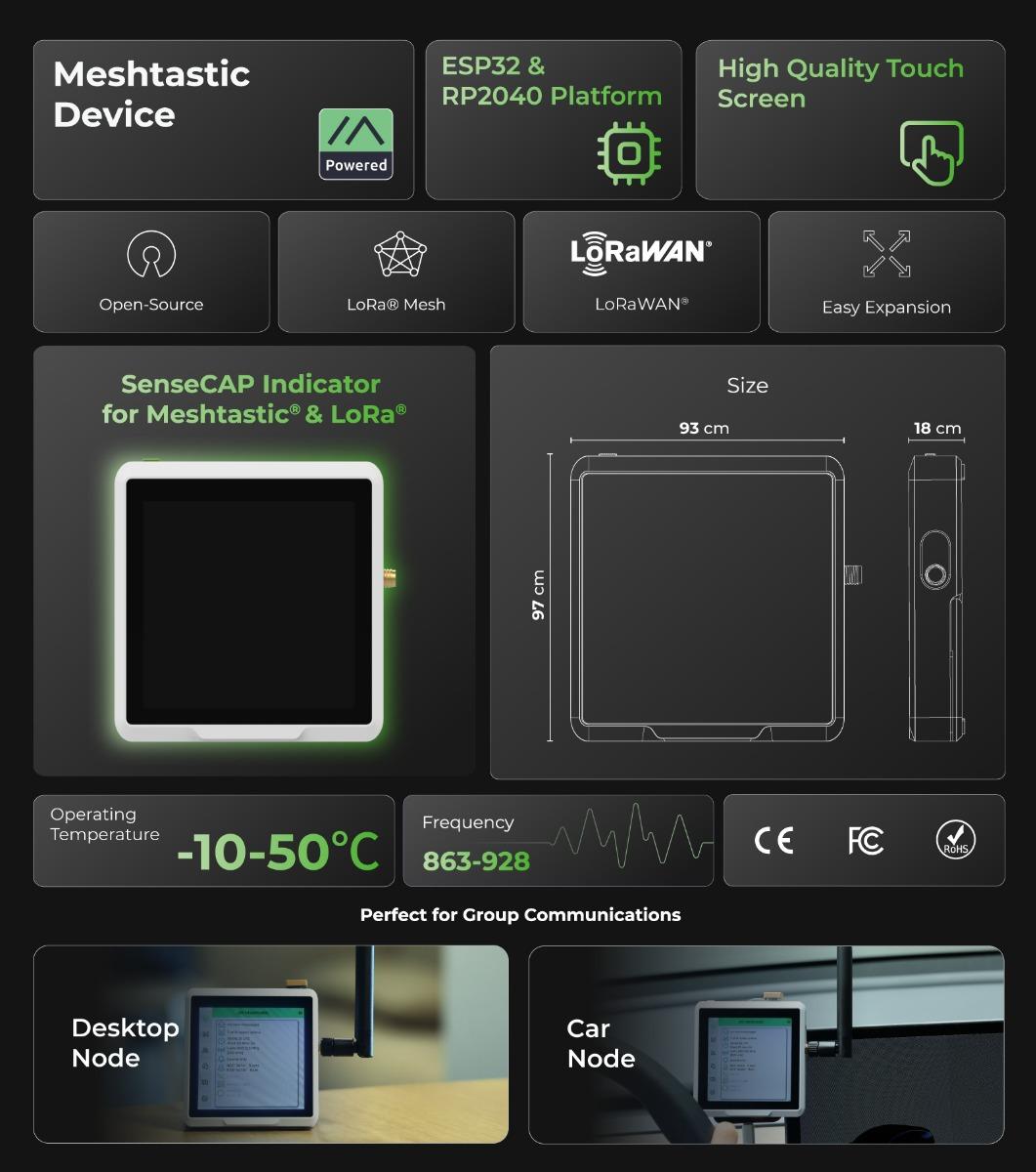 | Descrizione | It is a 4-inch touchscreen device designed for Meshtastic®, powered by dual MCUs, the ESP32 and RP2040, and supports Wi-Fi, BLE, and LoRa®. It is an open-source, powerful IoT development platform. |