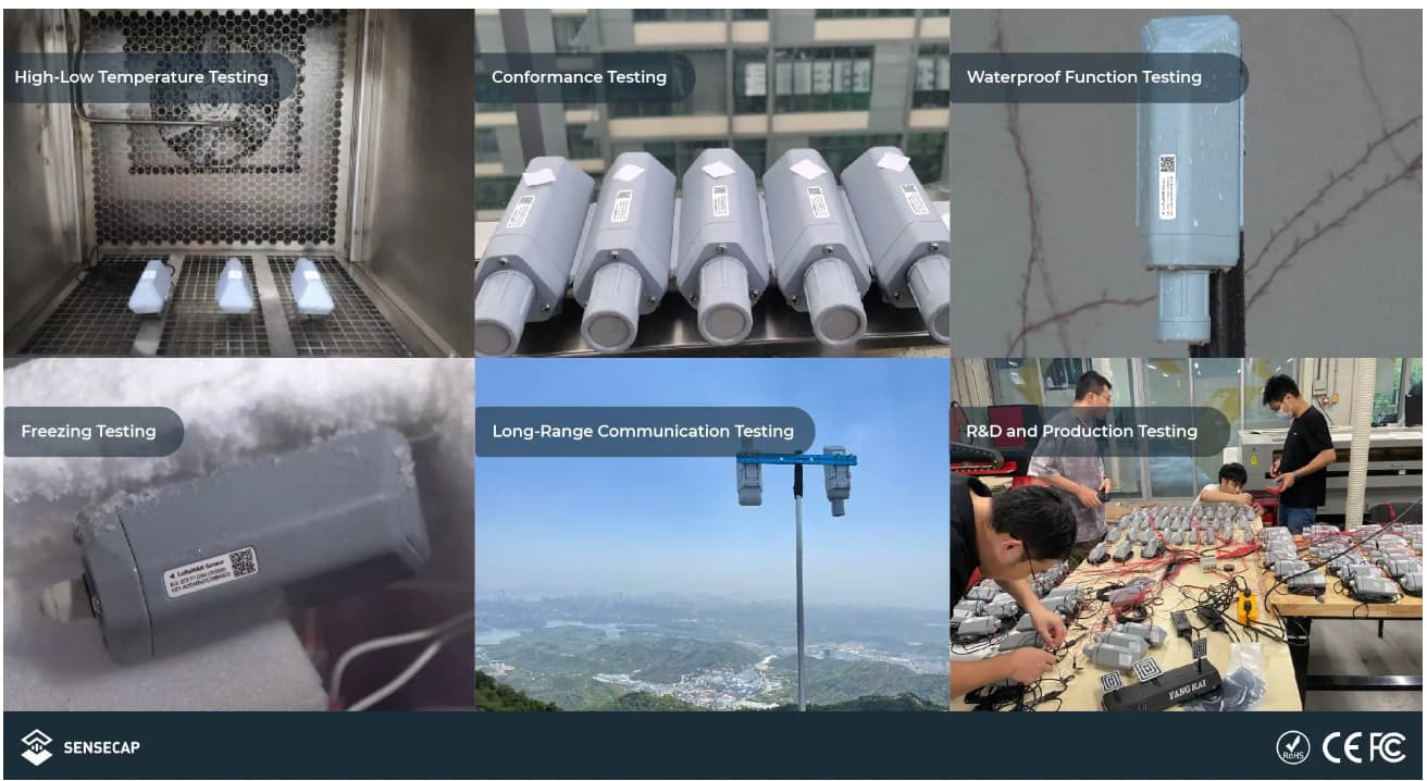 We are well aware that the sensors may work under harsh outdoor conditions. To ensure that the performance and durability of the sensors are consistent with their specifications throughout the complete lifecycle, SenseCAP S210X went through 6 reliability tests before releasing and met the requirements to perform perfectly in extreme conditions.