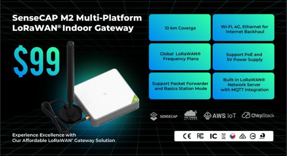 We highly recommend that you use our SenseCAP M2 Multi-Platform LoRaWAN Gateway, which is a standard LoRaWAN® gateway that supports connection to different network servers. With its affordable price of $99, its cost-effectiveness becomes a standout advantage, especially when building your private LoRaWAN network.