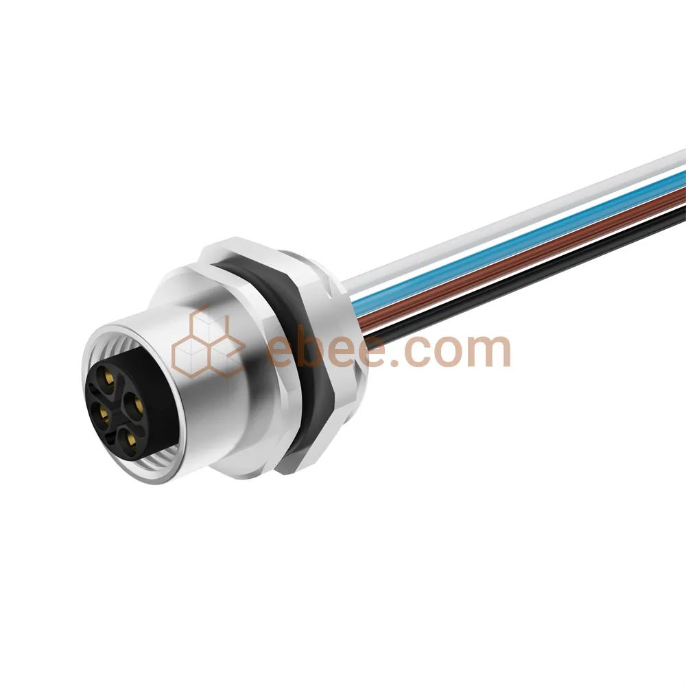 M12 4ピンSコード女性パネルマウントレセプタクルワイヤーリア固定アンシールドストレート
