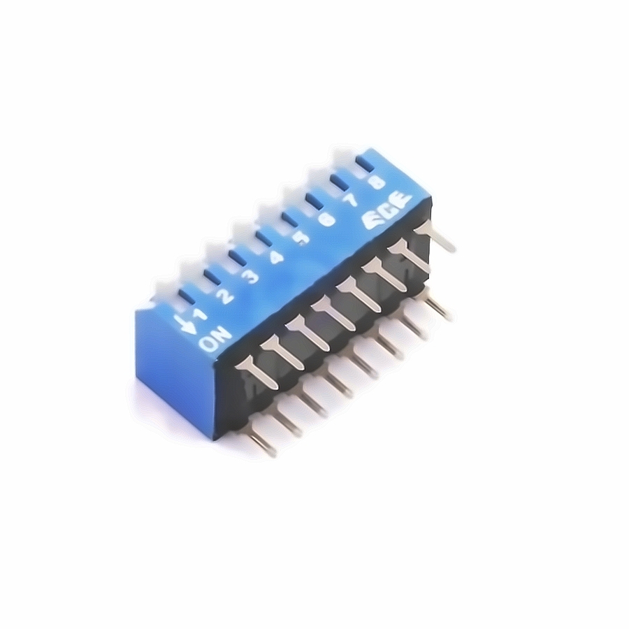 Description | 8-bit SPST 24V Blue 25mA 2,000 Times Piano Key Plugin DIP Switches ROHS |
