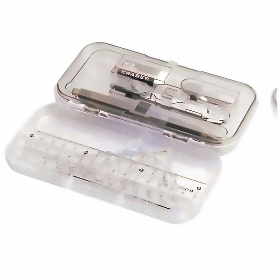 Number of items included | 15cm Ruler, 45° Triangle Ruler, 60° Triangle Ruler, Protractor, Eraser, Compass, Mechanical Pencil, Box of Lead Cores ×1 |