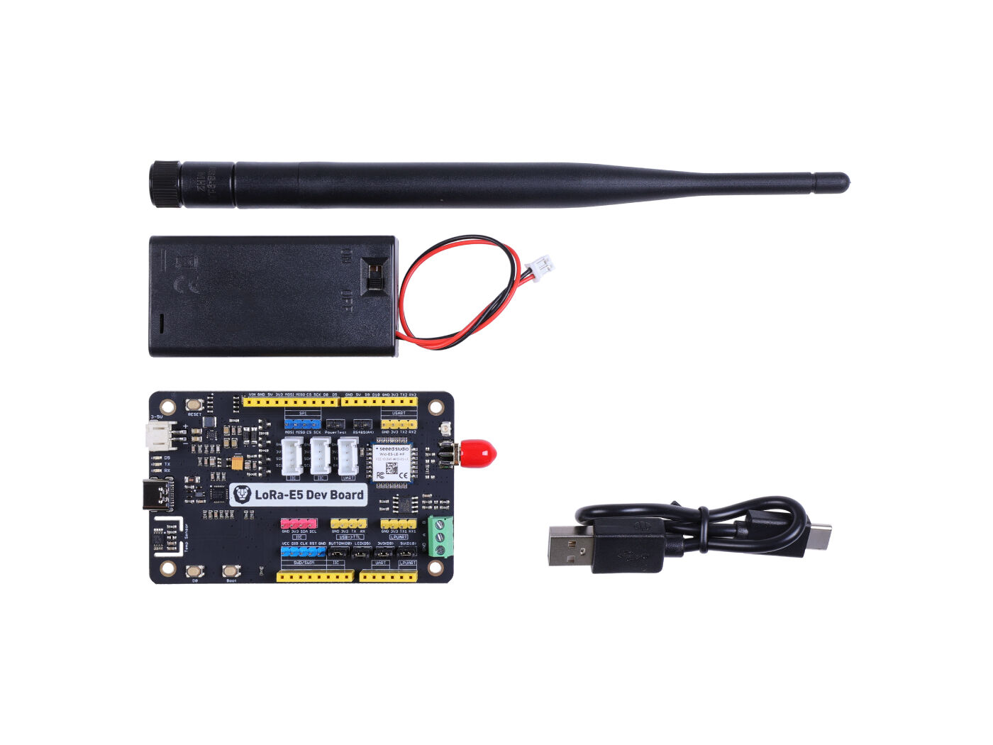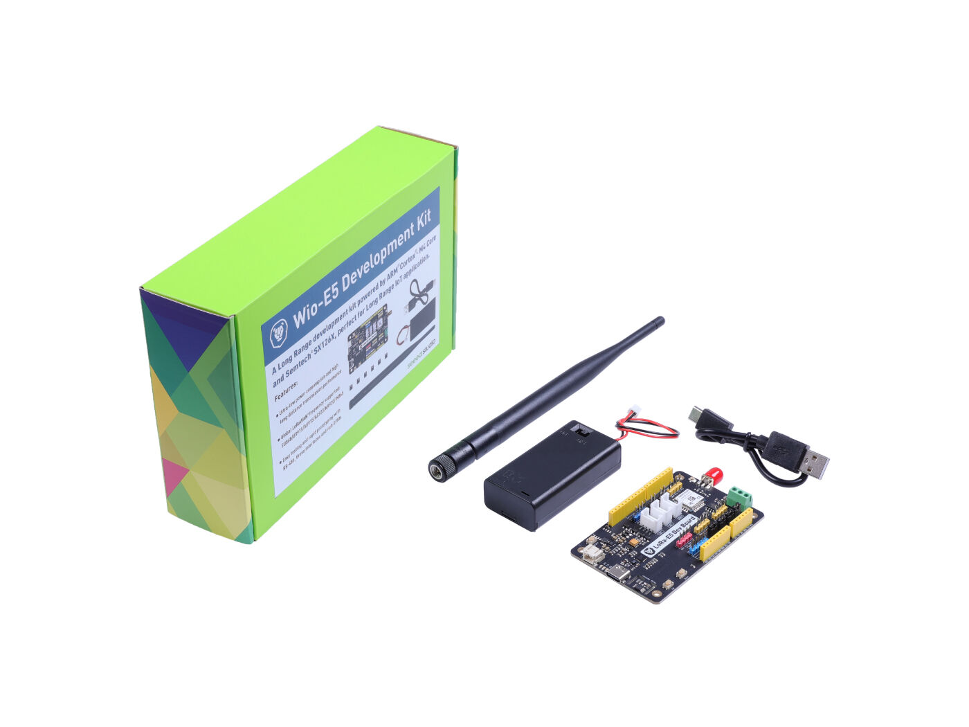 | Description | The Wio-E5-LE Dev Kit integrates the Wio-E5-LE Wireless Module (STM32WLE5JC) which supports LoRa protocol on global frequency bands. It provides full GPIO access and supports various data protocols and interfaces like RS485, Grove connectors, male/female headers, and more. This flexibility allows easy connections to other devices or components, making it user-friendly. With its abundant connectivity options, the Wio-E5-LE Dev Kit enables rapid testing and prototyping of long-range IoT projects, making it a perfect choice for fast iteration. |