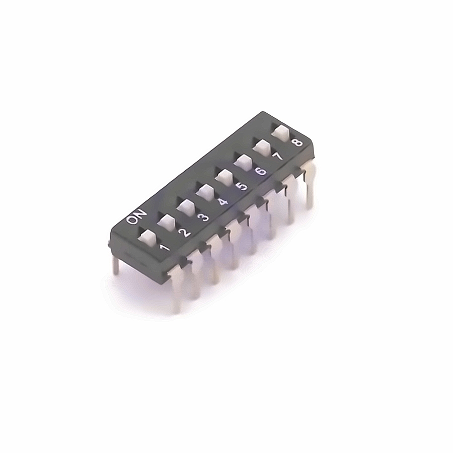 Description | 8-bit SPST 24V Black 25mA 3000 Times Flat Toggle, Raised Style Plugin DIP Switches ROHS |