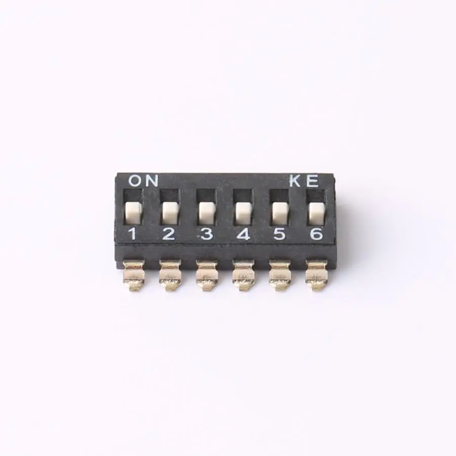 | Description | 6 digits SPST 24V Black 25mA 3000 times Flat Toggle, Raised Style SMD-12P,6.15x15.24mm DIP Switches ROHS |