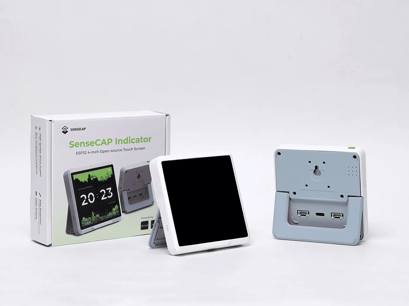 SenseCAP Indicator is a 4-inch touch screen driven by ESP32 and RP2040 dual-MCU and supports Wi-Fi/BLE/LoRa® communication.