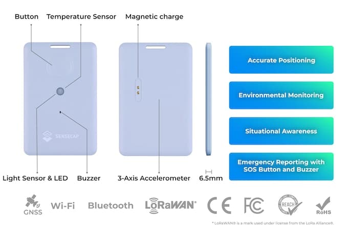 | Descrição | The SenseCAP T1000 is a card-size LoRaWAN® tracker that utilizes GNSS/Wi-Fi/Bluetooth for precise indoor & outdoor location tracking. It assures reliable tracking across various applications. |